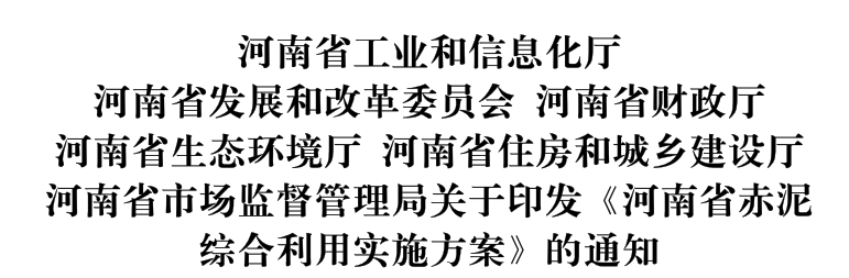 《河南省赤泥综合利用实施方案》已经省政府同意,现印发给你们,请结合实际认真贯彻落实。